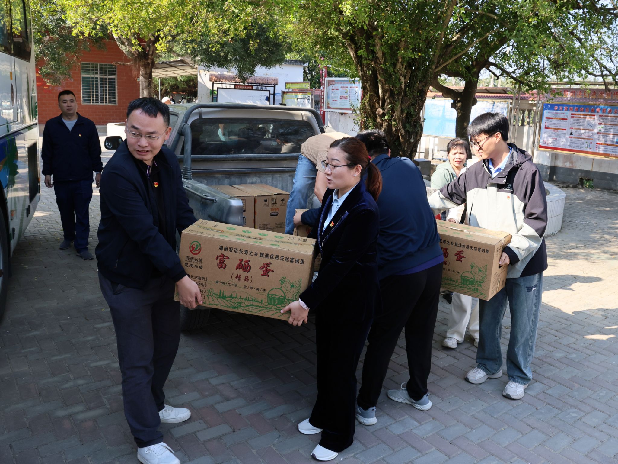 学院师生看望了学校派驻水头村驻村第一书记丁菁华,并与水头村驻点领导罗江、村“两委”书记刘宝忠等开展座谈交流。丁菁华介绍了水头村的生产生活、农产品收成及学校教职工消费帮扶情况。