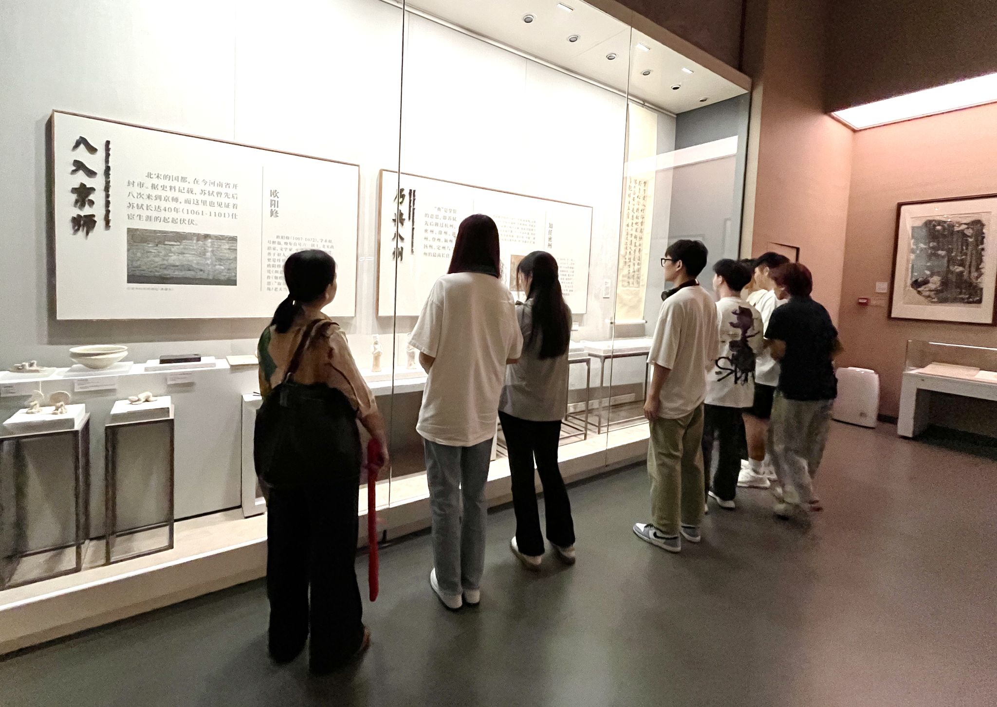 在“千古风流 不老东坡——苏轼主题文物展”,师生们身临其境体验宋风雅趣,在泼墨挥毫的展品中,感受“宋四家”书法真迹穿透千年的独特魅力,聆听流传千年的东坡故事,感受苏东坡的家国情怀和豁达人生和中华文化的博大精深。