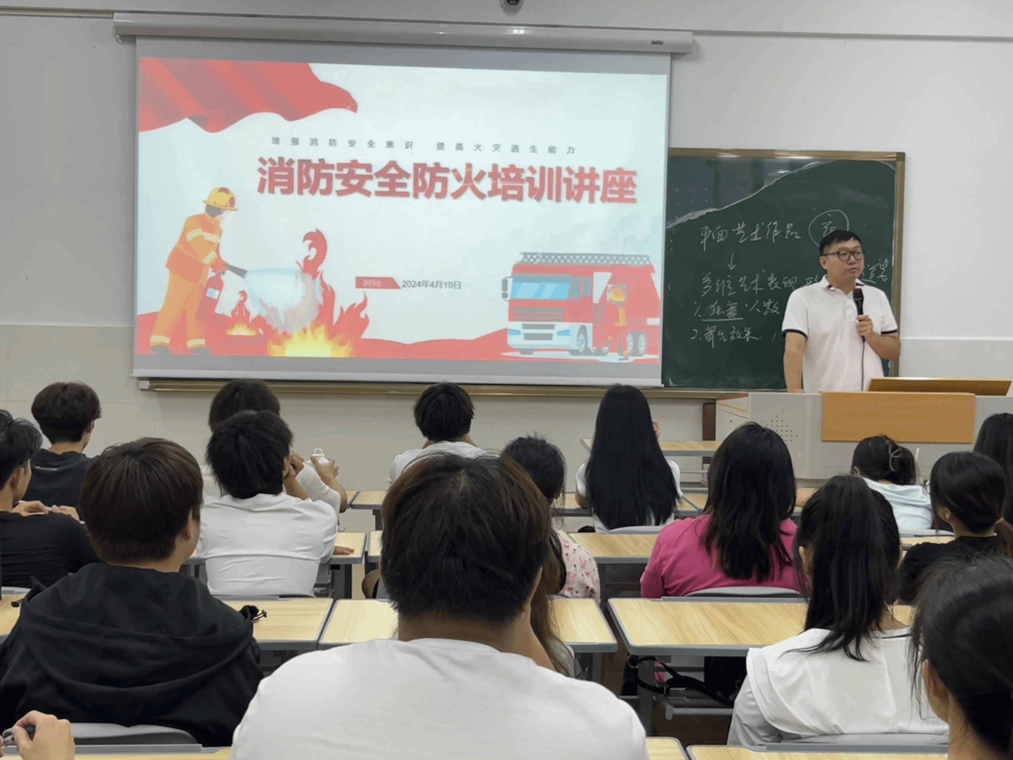 近日,人文艺术学院开展消防安全知识讲座。学工办副主任徐超、辅导员符修昊分别从高校火灾事故的主要类型、扑灭火灾的有关技能、火场逃生自救的方法、火灾事故的预防等四个内容进行讲解,结合大量案例资料提醒同学们预防火灾的重要性,叮嘱大家将消防安全知识内化于心、外化于行,共同做好火灾防范工作。