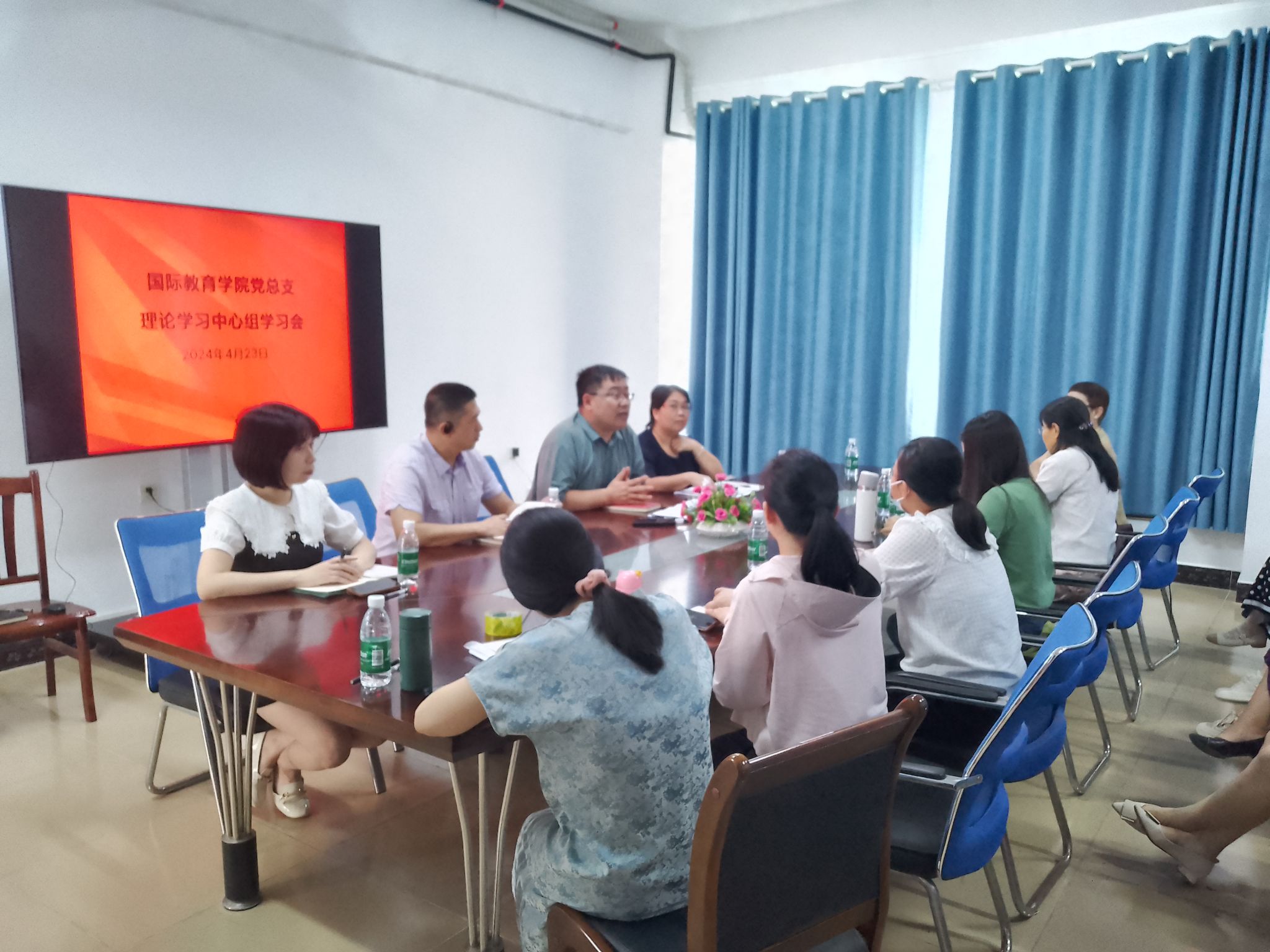 2024年4月23日,国际教育学院党总支召开理论学习中心组学习会,进行党纪学习教育第一次集中学习。学院班子成员、理论学习中心组成员参加学习。