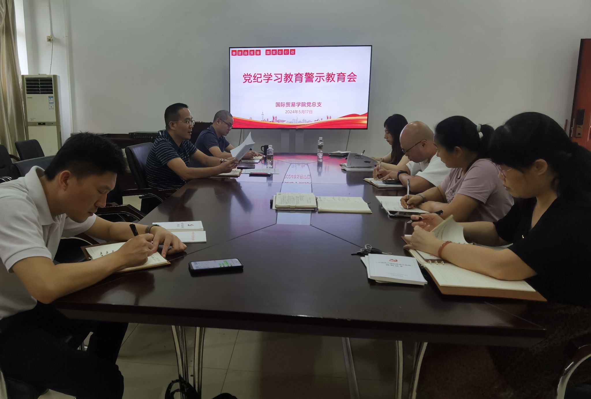 2024年5月17日,国际贸易学院党总支召开党纪学习教育专题警示教育会,提升党员干部廉洁自律意识和防腐拒变能力,进一步推进党纪学习教育走深走实。