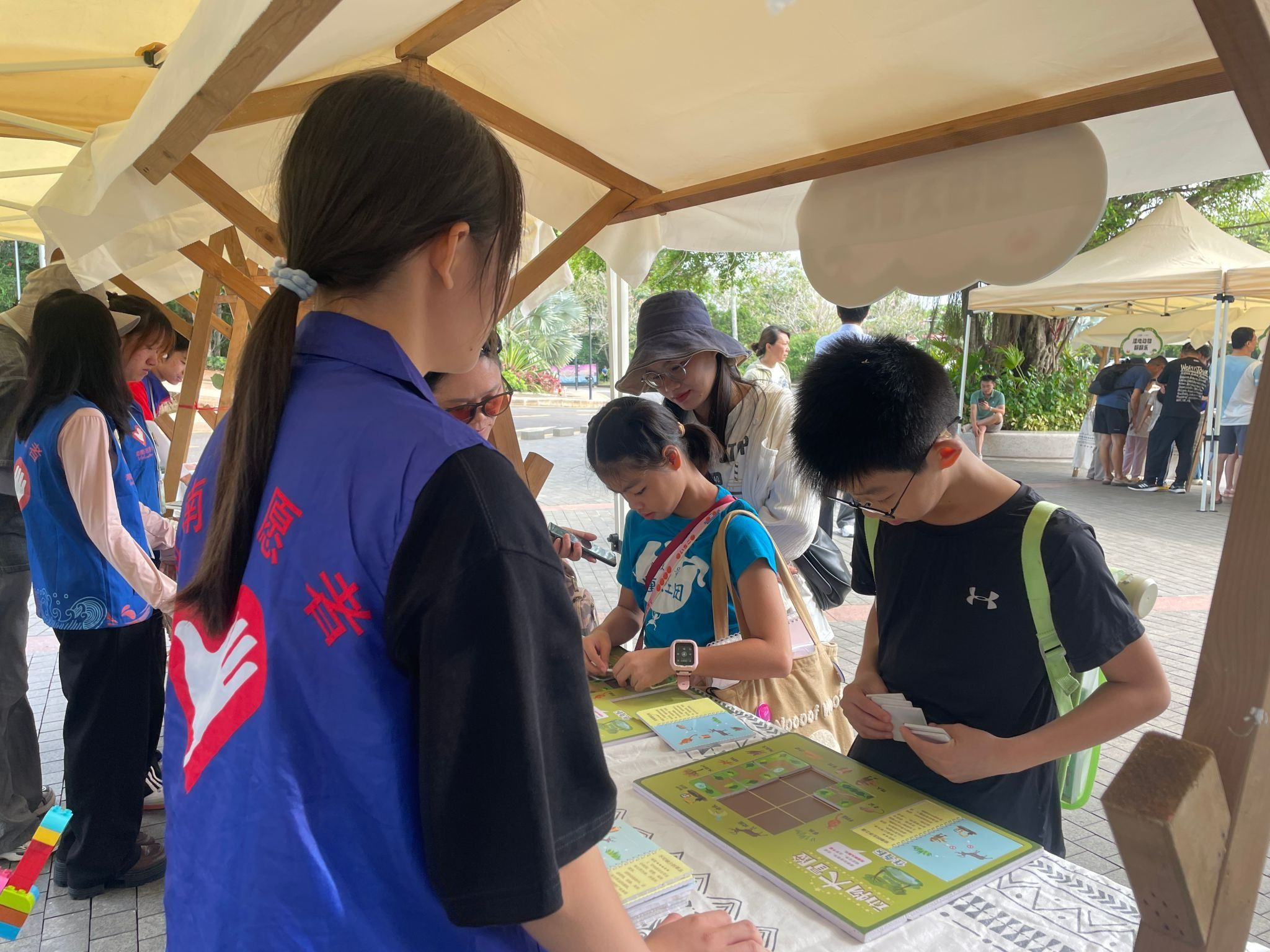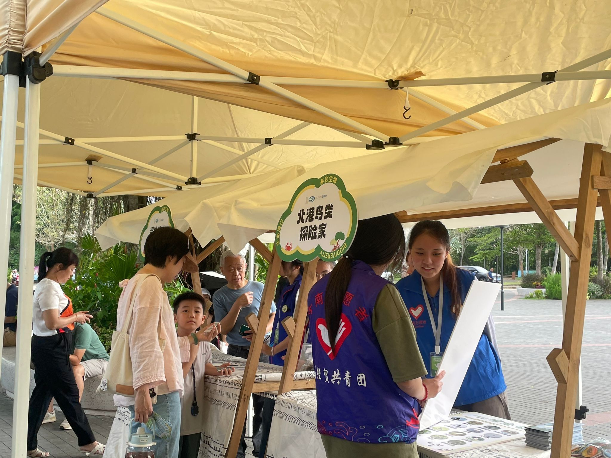志愿者们根据分工安排,积极引导相关部门的领导嘉宾在签名墙前签字并有序入座,协助做好科普讲座互动礼品发放。志愿者们积极协助美丽海口生物多样性科普展、生物万花筒科普市集、亲子自然观察笔记和“你描述我猜鸟”等活动开展,在各活动现场引导并协助游客参与各种互动游戏和科普活动,让游客们进一步了解和认识红树林生态系统,增强参与生物多样性保护的意识,让生态文明理念更加深入人心。