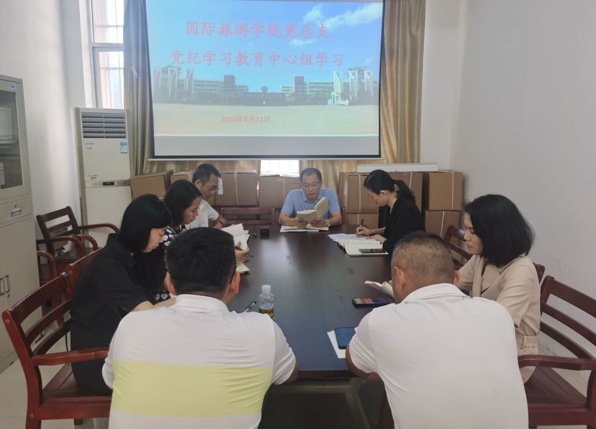 2024年6月12日,国际旅游学院党总支召开理论学习中心组集体学习会,集体学习《习近平关于全面加强党的纪律建设论述摘编》,开展警示教育,推动党纪学习教育走深走实。