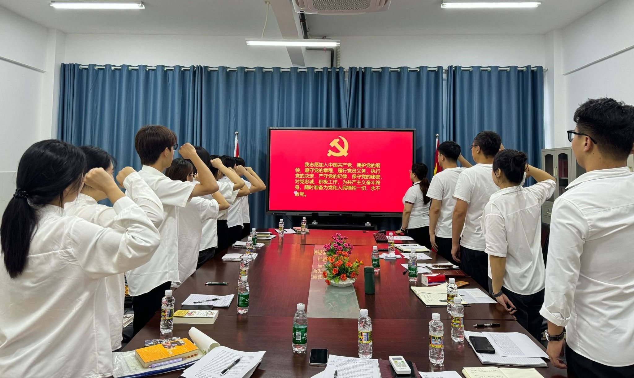 党课结束后,全体党员重温入党誓词,共同回顾入党初心,坚定理想信念。毕业生党员们延续了国际教育学院学生党支部的优良传统,纷纷向支部捐赠了精心挑选的书籍,并附上了深情寄语,通过知识与精神的传承表达了对母校的感恩之情和对学弟学妹的殷切期望。