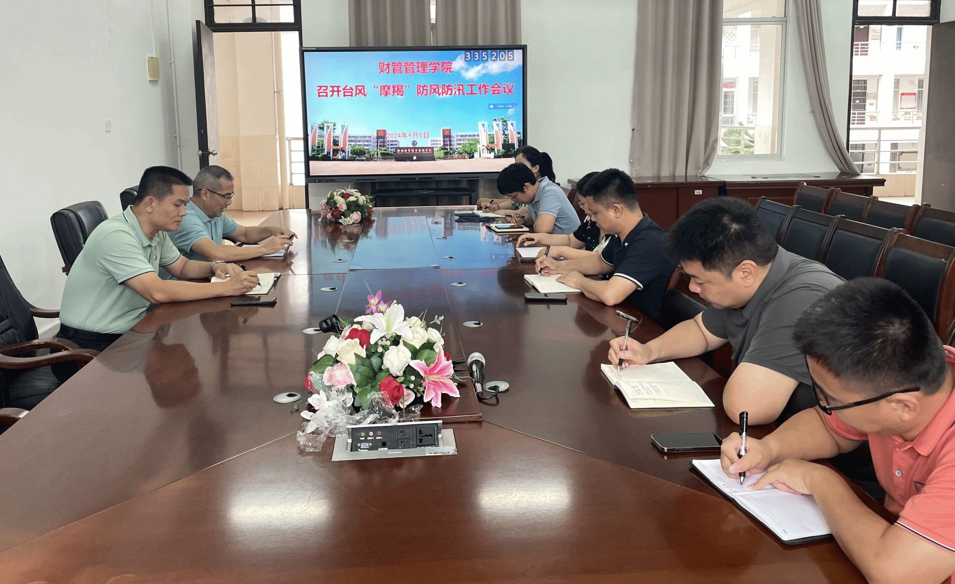 面对即将登陆的超强台风“摩羯”,为保障师生员工的人身财产安全及校园安全稳定,财务管理学院于2024年9月5日上午召开防风防汛工作会议。