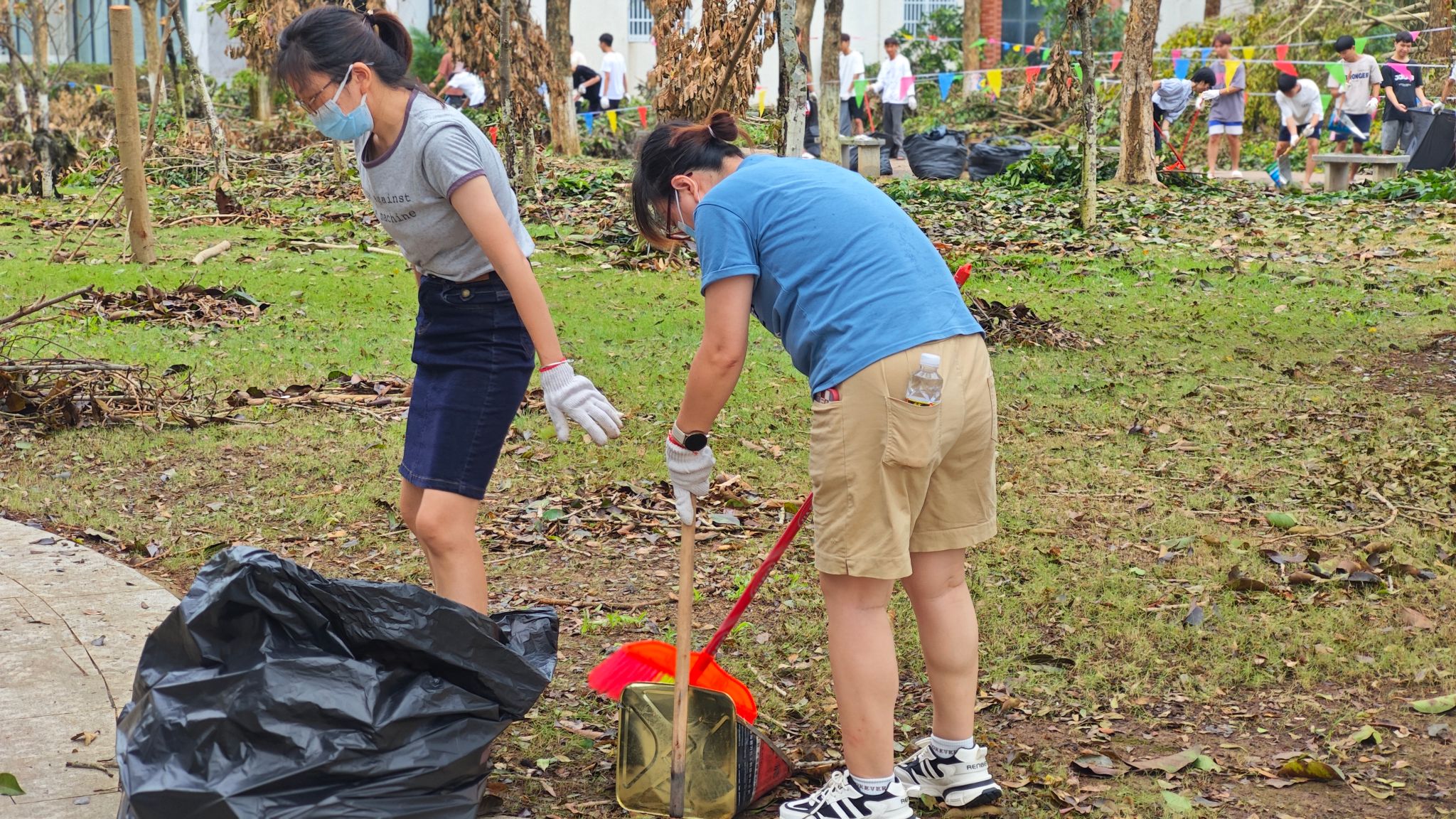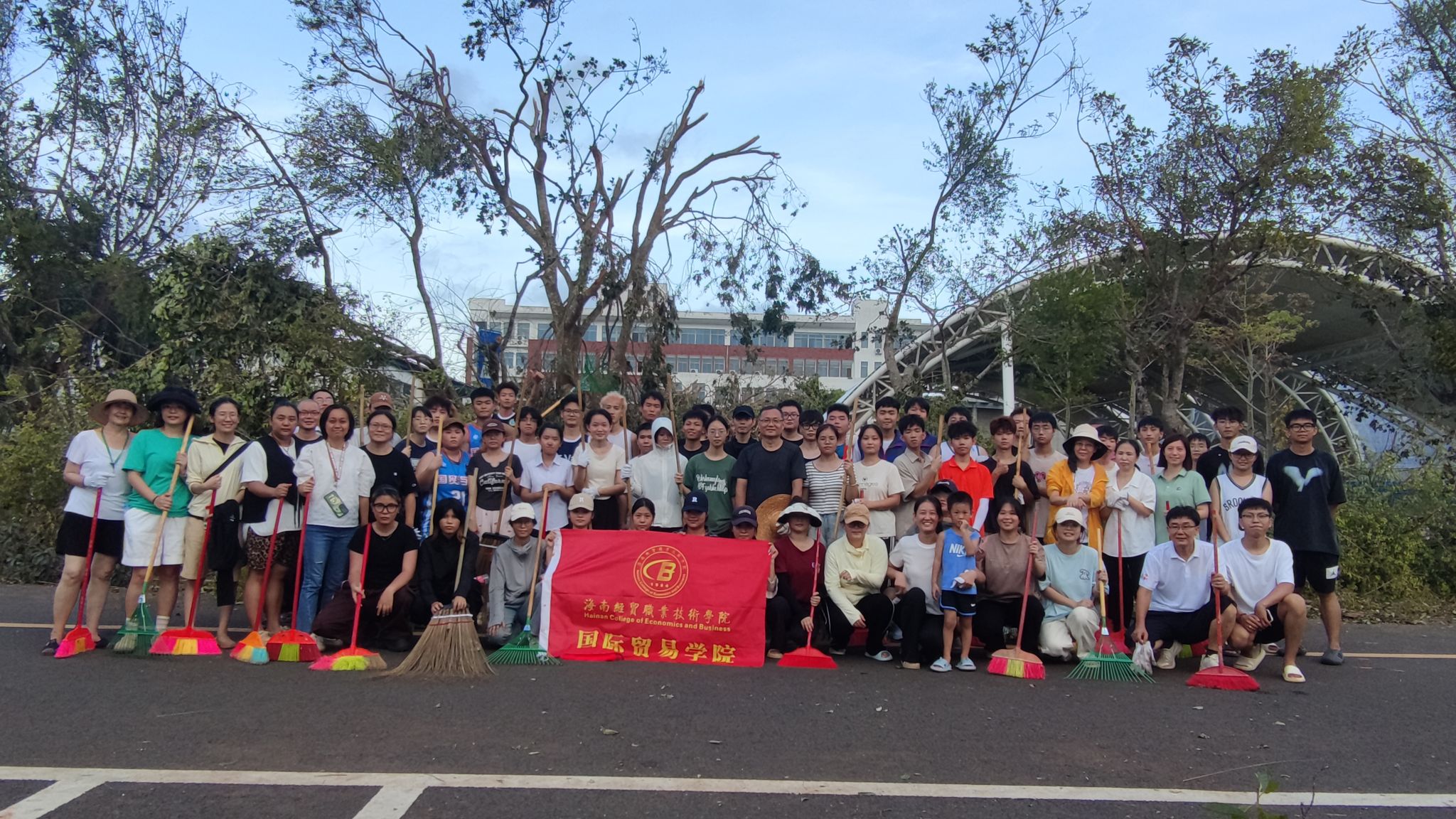 近日,超强台风“摩羯”携风带雨横扫而过,留下满目疮痍的海经贸校园。在这场自然灾害面前,国际贸易学院全体师生迅速响应,积极投入到校园重建工作中,以实际行动展现了“风雨同舟,共克时艰”的精神风貌。