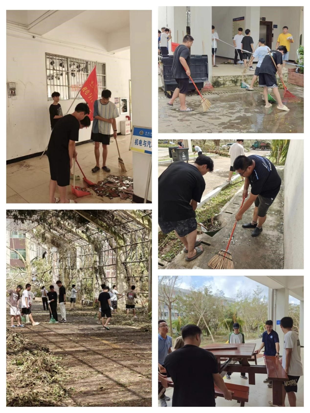 近日,台风“摩羯”肆虐而过,给校园带来了严重破坏。机电与汽车工程学院的师生们迅速行动,全力以赴投入到校园灾后恢复重建工作中。