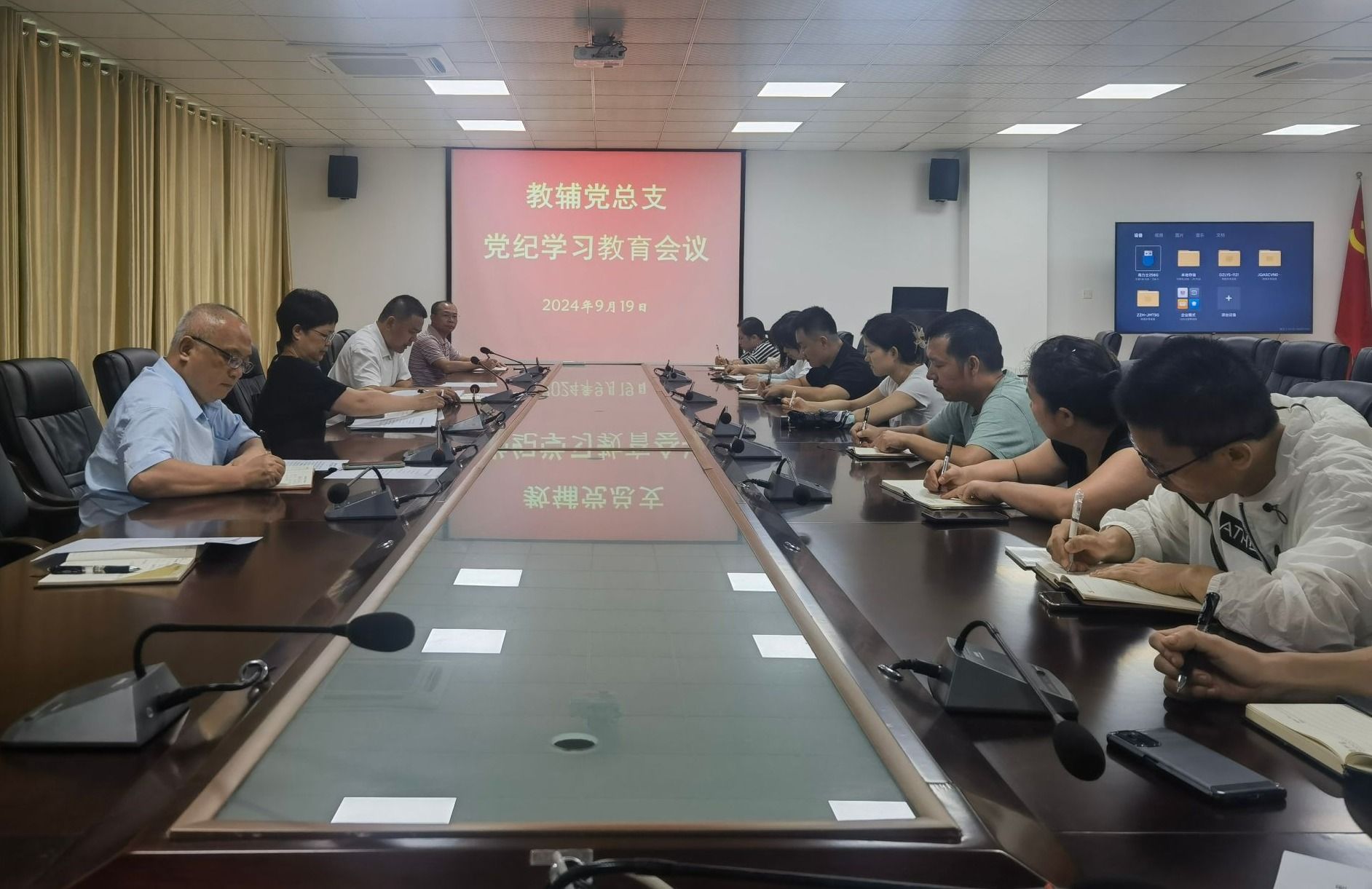 2024年9月19日,教辅党总支召开会议,学习贯彻习近平总书记在全国教育大会上的重要讲话精神和全国教育大会精神,并进行党纪学习教育总结。全体党员参加会议。
