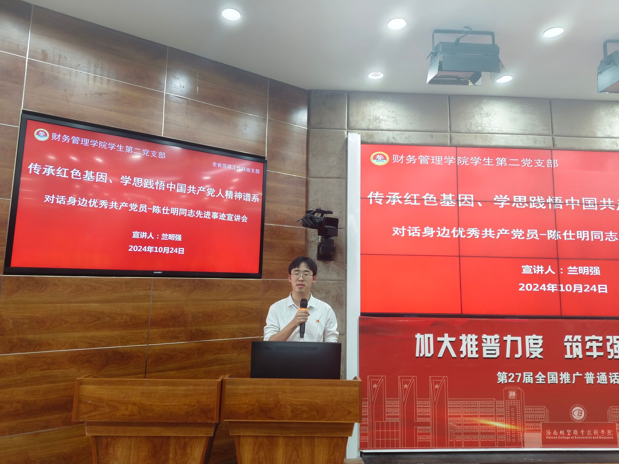 2024年10月24日,财务管理学院学生第二党支部开展“传承红色基因、学思践悟中国共产党人精神谱系”宣讲启动仪式。200余名入党积极分子和团员参加宣讲会。