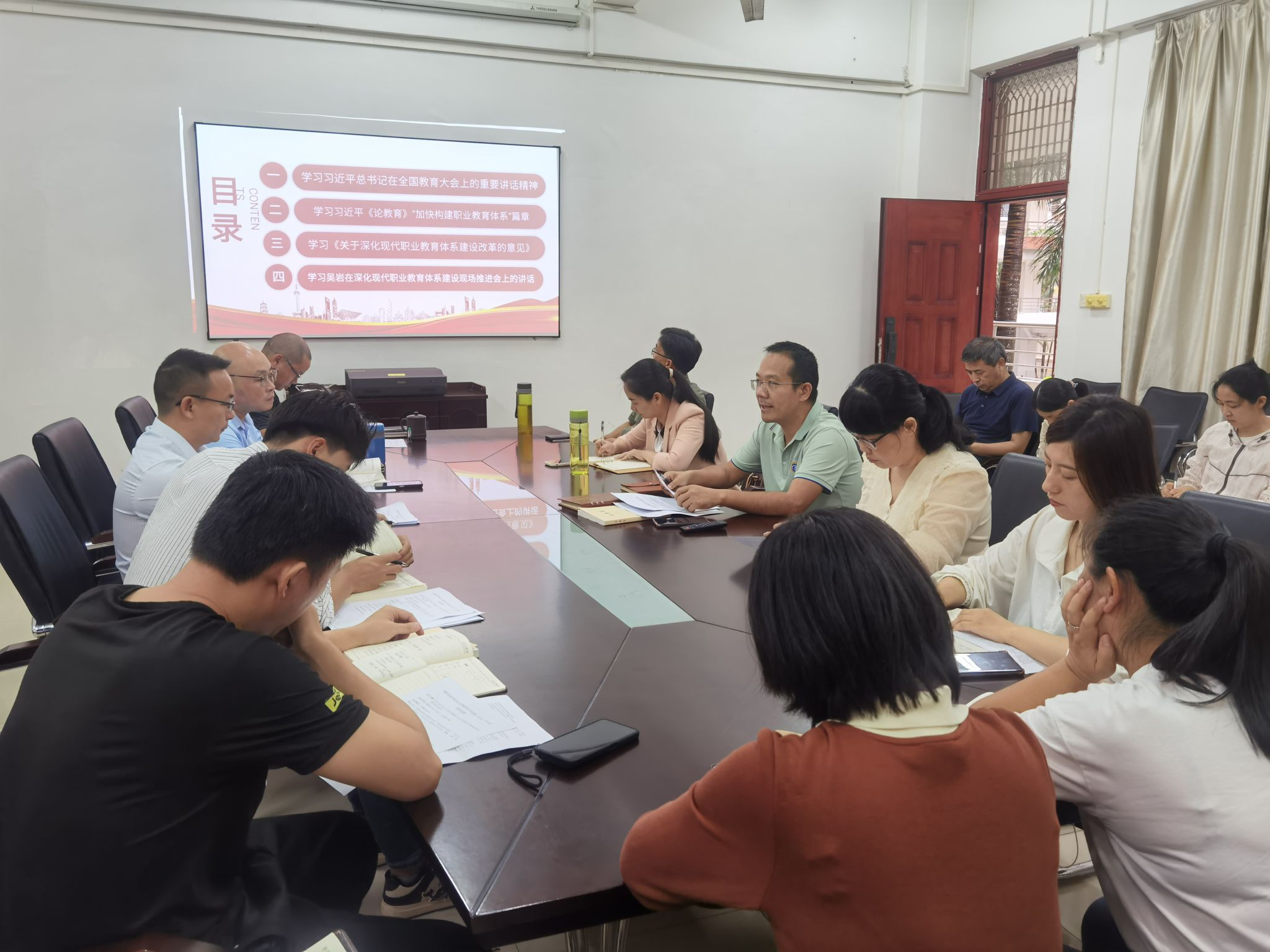 2024年10月29日,国际贸易学院党总支理论学习中心组召开扩大学习会,专题学习习近平总书记在全国教育大会上的重要讲话精神及职业教育相关政策。