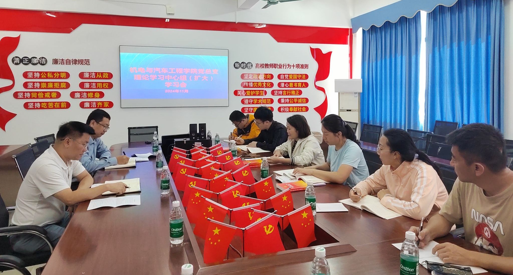 2024年11月28日,机电与汽车工程学院党总支召开理论学习中心组(扩大)会议,深入学习习近平总书记《论教育》相关内容和全国教育大会精神、全省教育大会精神。学院党总支书记黄邦姬主持会议,学校理论学习中心组列席旁听工作组成员邓小康、史付田到会列席旁听。