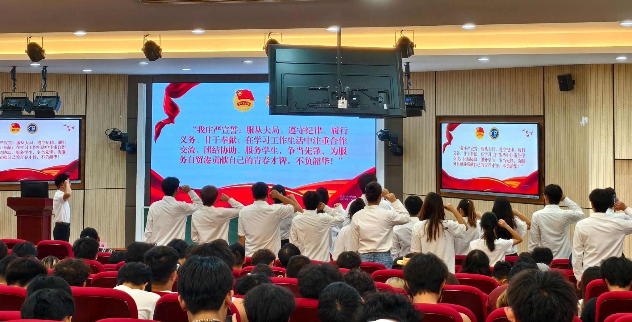 在乌拉尔学院第四届团学青就职仪式上带领学生会成员宣誓