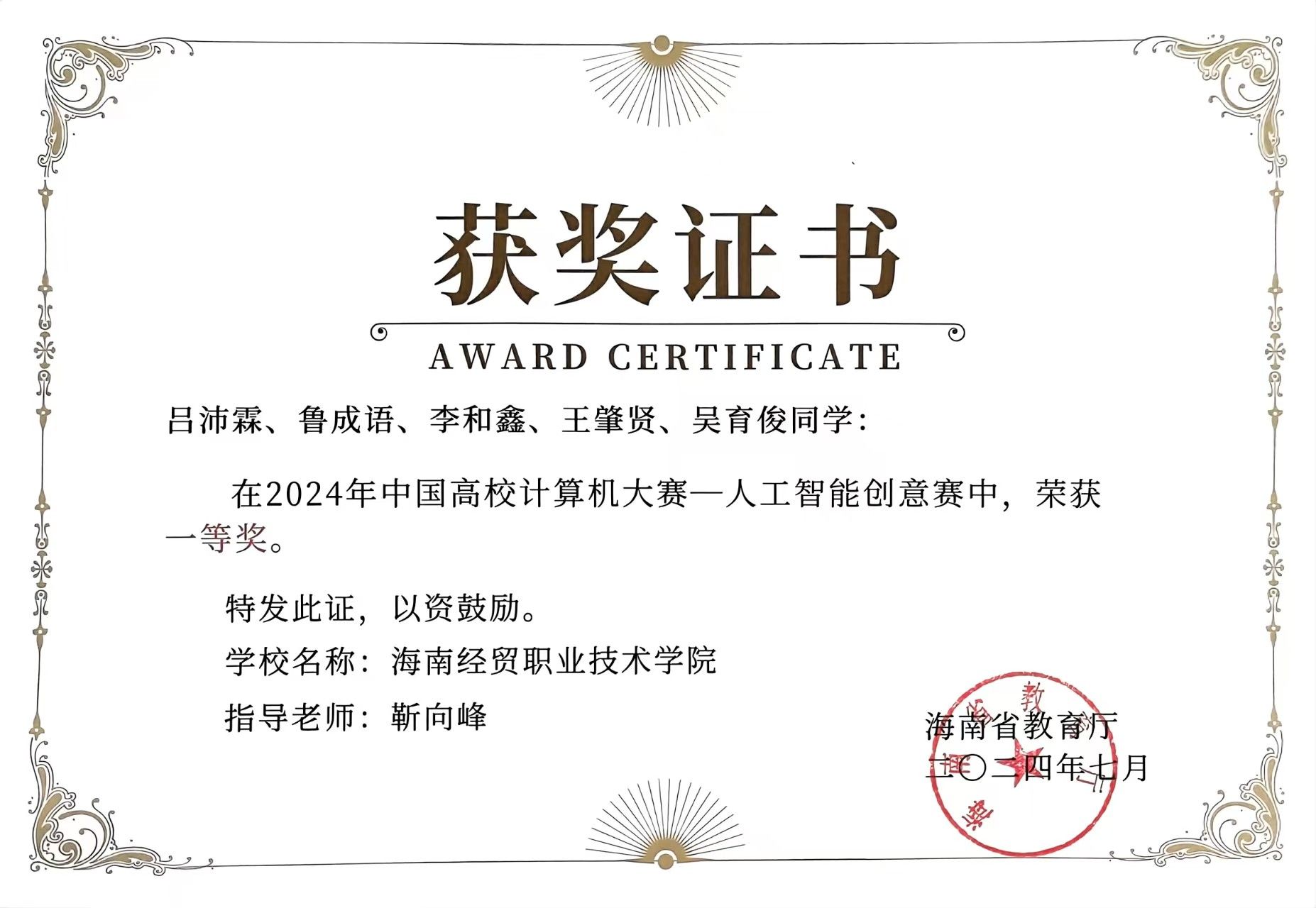 鲁成语,中共预备党员,kaiyun登录中国入口登录乌拉尔学院2022级软件技术专业学生,曾任乌拉尔学院主席团成员。荣获2023-2024年国家奖学金、中国国际大学生创新大赛(2024)国赛一银二铜、中国国际大学生创新大赛(2023)国赛铜奖、2024年中美青年创客大赛总决赛优秀奖、2024年中国高校计算机大赛人工智能创意赛省赛一等奖、第十四届挑战杯海南省大学生创业计划竞赛银奖、2023年“海峡两岸暨港澳地区大学生计算机创新作品赛”省赛三等奖、2022-2023学年度学校二等奖学金等40余项荣誉。