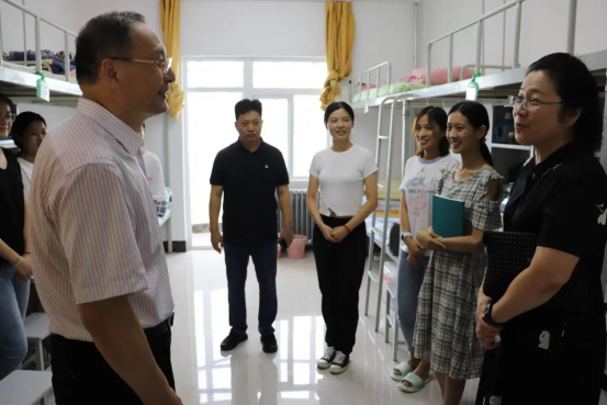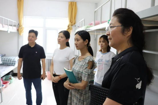 为了解新生入学情况,让新生更快适应大学生活,督促学生加强寝室安全与卫生工作,9月9日下午,必赢242net官网纪委书记范玉斌在必赢242net官网党委书记赵茗、副书记姜淮和新生辅导员姜楠、导员助理张妍的陪同下,来到2021级学生公寓走访视察。