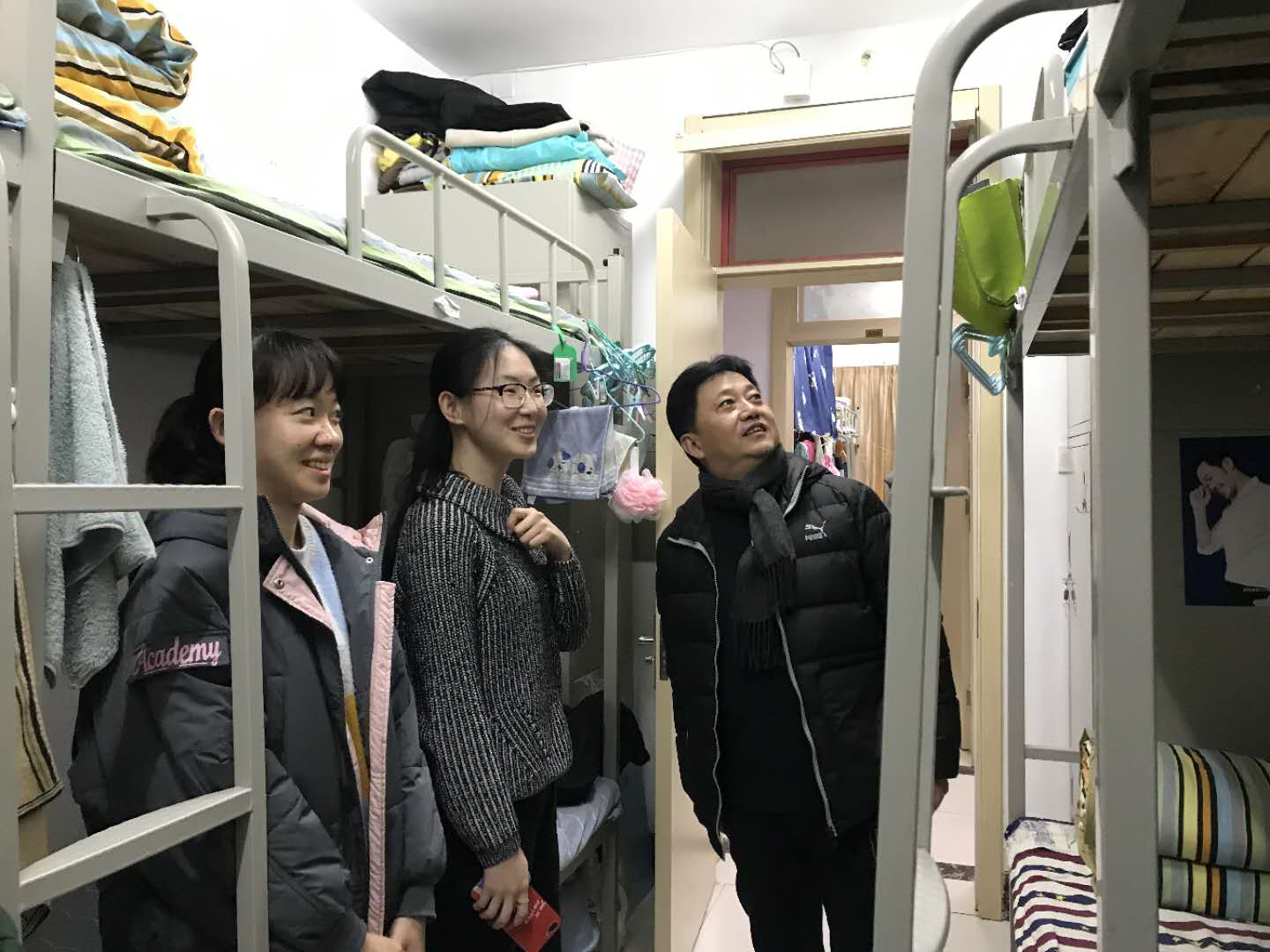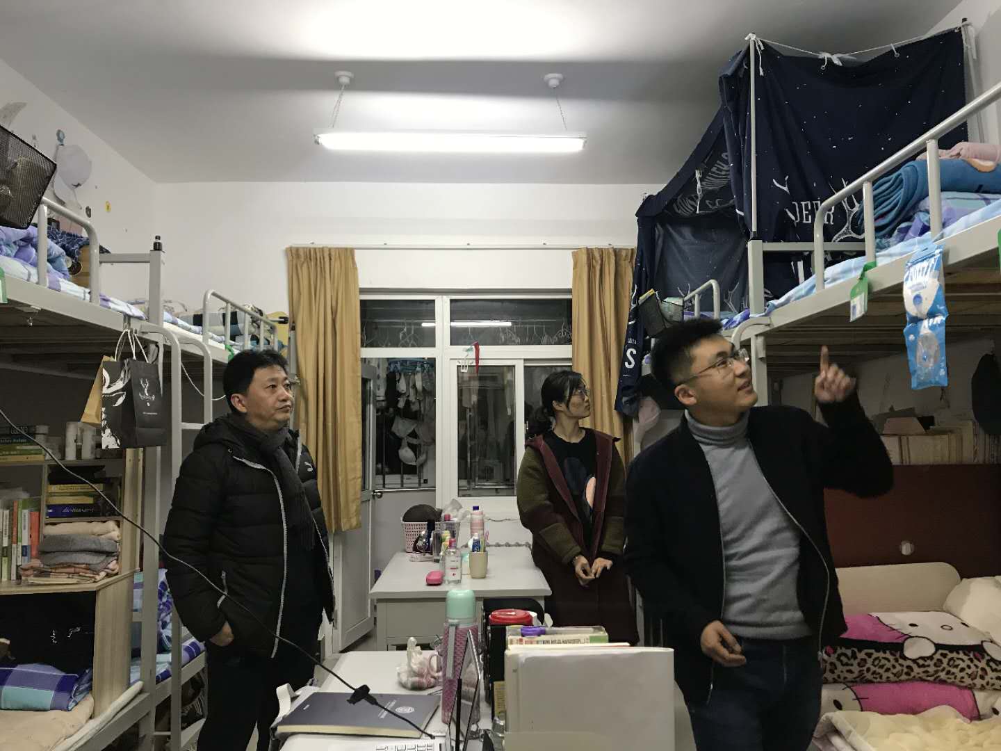 3月6日晚,必赢242net官网党委副书记姜淮、辅导员陶征来到汇园、莹园等学生公寓,走访学生宿舍,检查宿舍卫生,查看公寓文化建设情况,了解学期初必赢官网学生的学习生活情况。