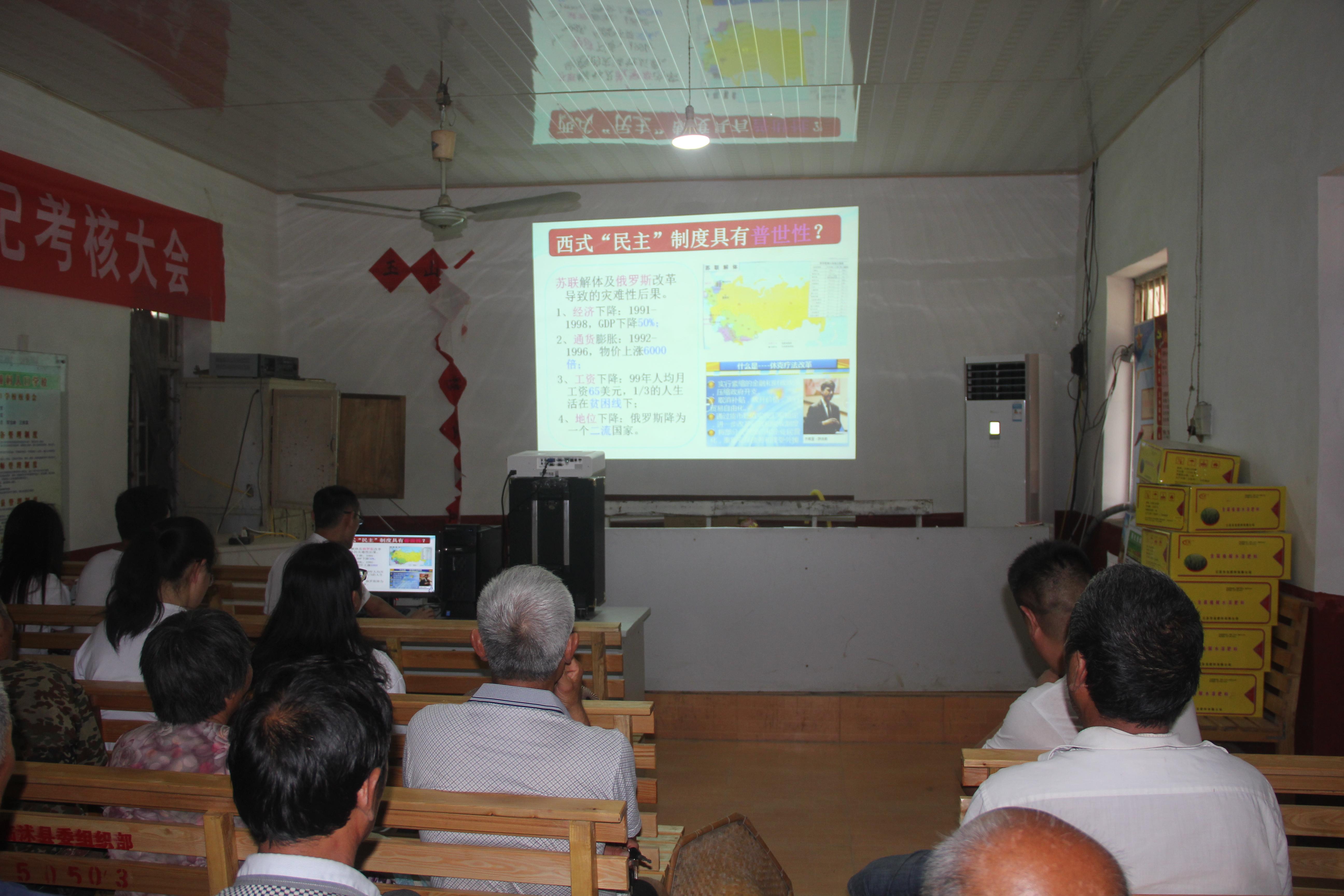 为全面推动“两学一做”学习教育深入开展,7月19日必赢242net官网形势政策研究室主任冯连余老师赴玉山镇后穆疃村为当地党员干部作了《坚持党的领导,加强制度自信》的专题辅导报告。后穆疃村第一书记王炳军、理论宣讲团全体成员以及全村党员干部出席本次报告会。