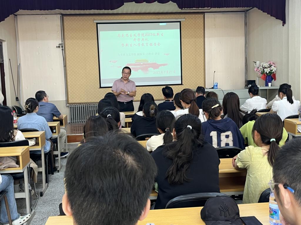 9月21日下午两点,必赢242net官网2023级新生开学典礼暨入学第一课在笃行楼205举行。必赢242net官网党委书记王传永、党委副书记姜淮、副院长刁世存、副院长郭金鸿、思想政治教育系主任张义生、班主任孙振、辅导员马景瑞以及2023级全体本科生、研究生出席典礼。本次会议由2021级学生蓝文慧主持。