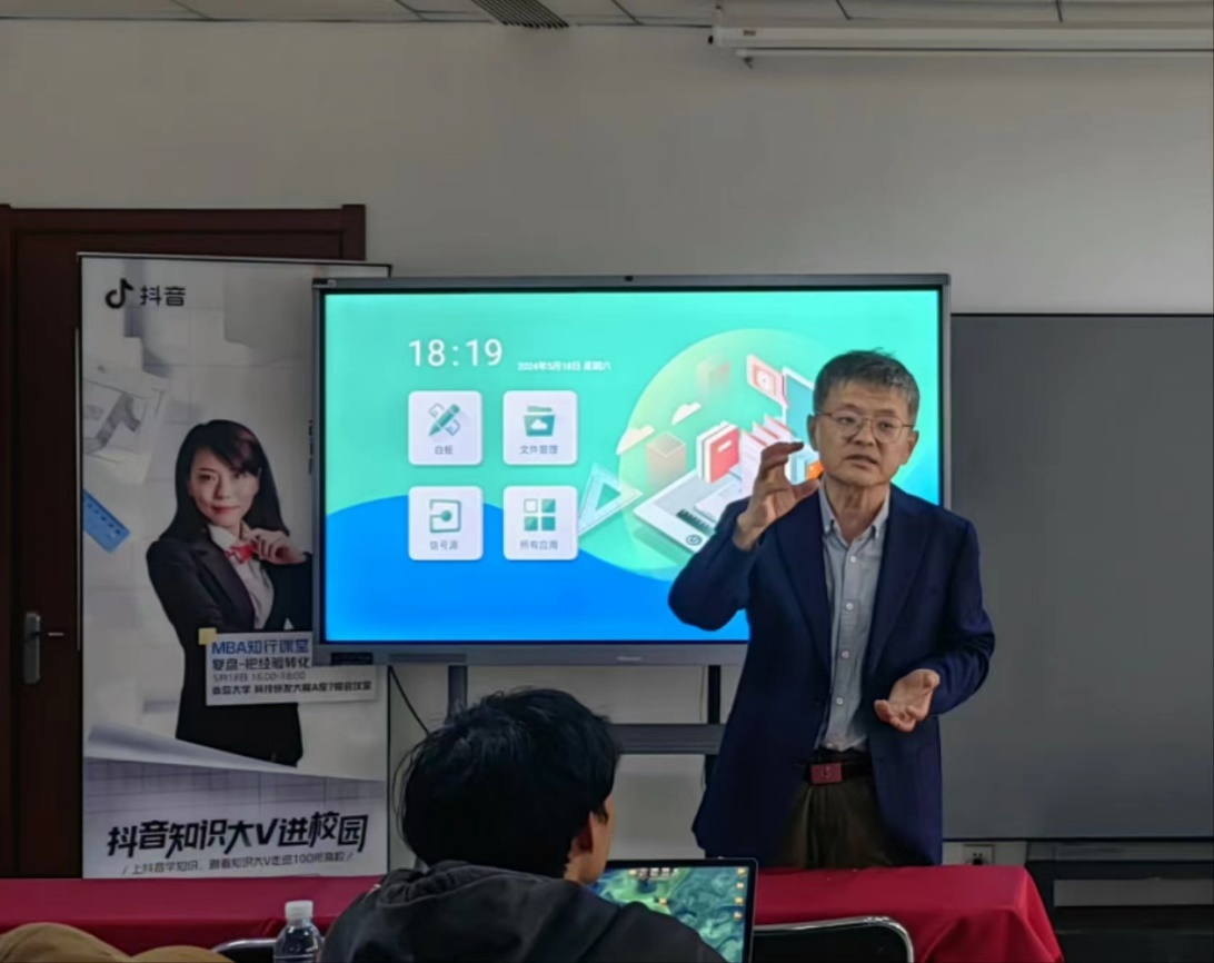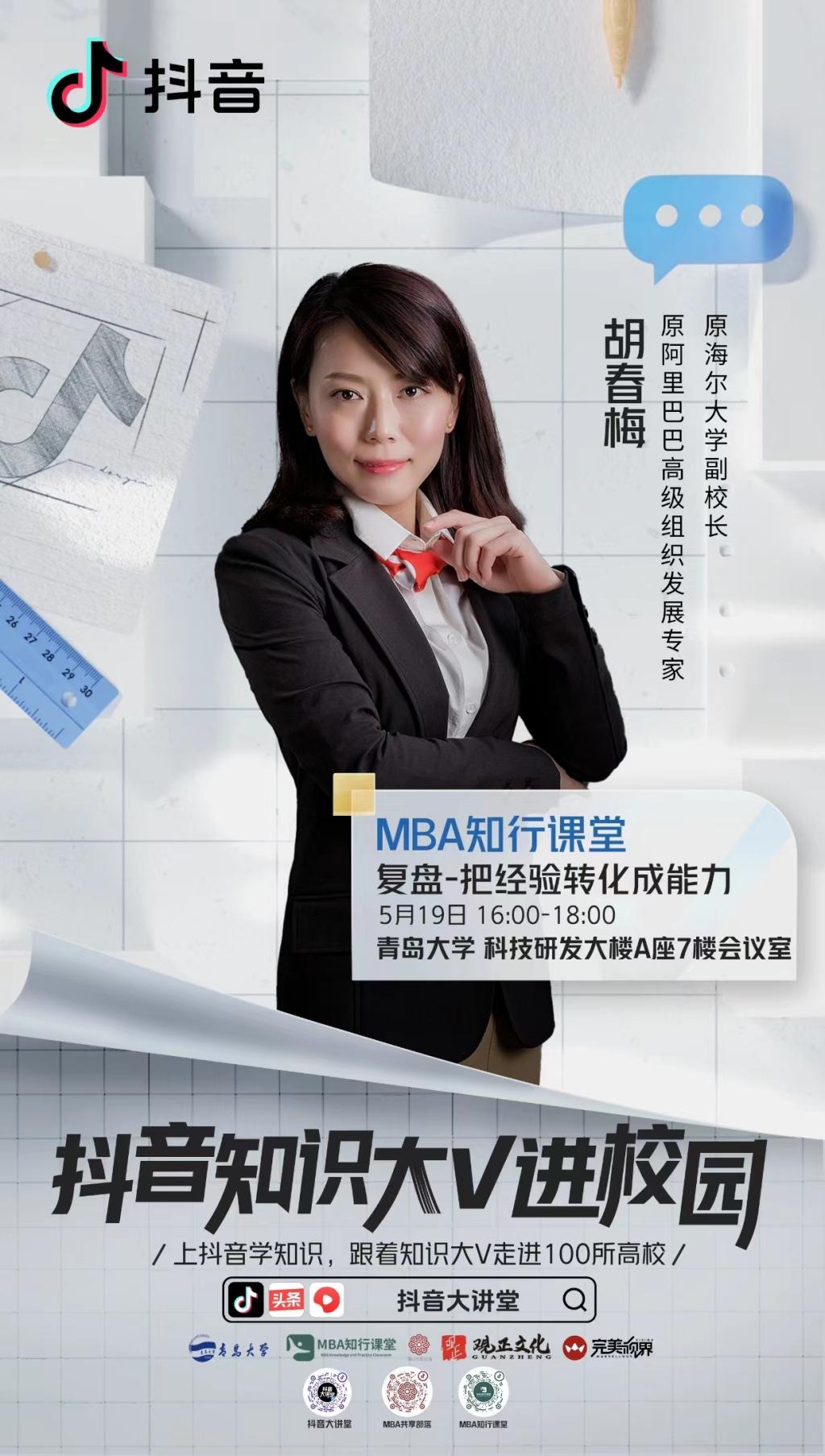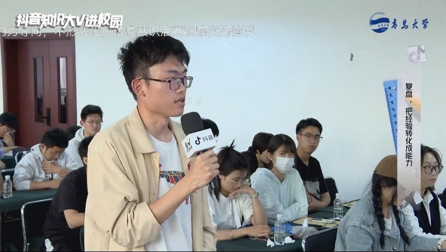 2024年5月18日下午4-6点,青大思政大课堂“企业家精神暨海尔人单合一管理模式研习班”(第二期)受抖音平台邀请在浮山校区“研发大楼”A座705会议室举办了抖音知识大“V”进校园讲座活动。参加本次课程的人员有:管永建老师、校外导师、青大2001级自动化校友胡春梅老师、必赢242net官网部分优秀校友和研习班的全体同学。