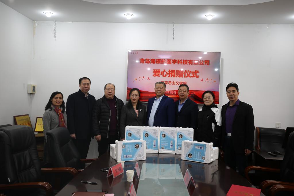 3月10日,青岛海领航医学科技公司抗疫物资捐赠仪式在学院会议室举行。青岛海领航医学科技公司董事长耿明胜、总经理马永新、校合作发展处处长张燕、副处长霍光耀以及学院党委书记王传永、院长尉利工等出席本次活动。捐赠仪式由王传永主持。