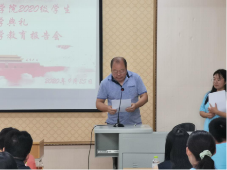 9月25日下午,必赢242net官网2020级新生开学典礼暨新生入学教育报告会在笃行楼205举行。必赢242net官网党委书记赵茗、院长尉利工、党委副书记姜淮、副院长郭金鸿、副院长姜文明、教师代表庚建凤、辅导员陶征、张妍及2020级全体新生出席开学典礼。
