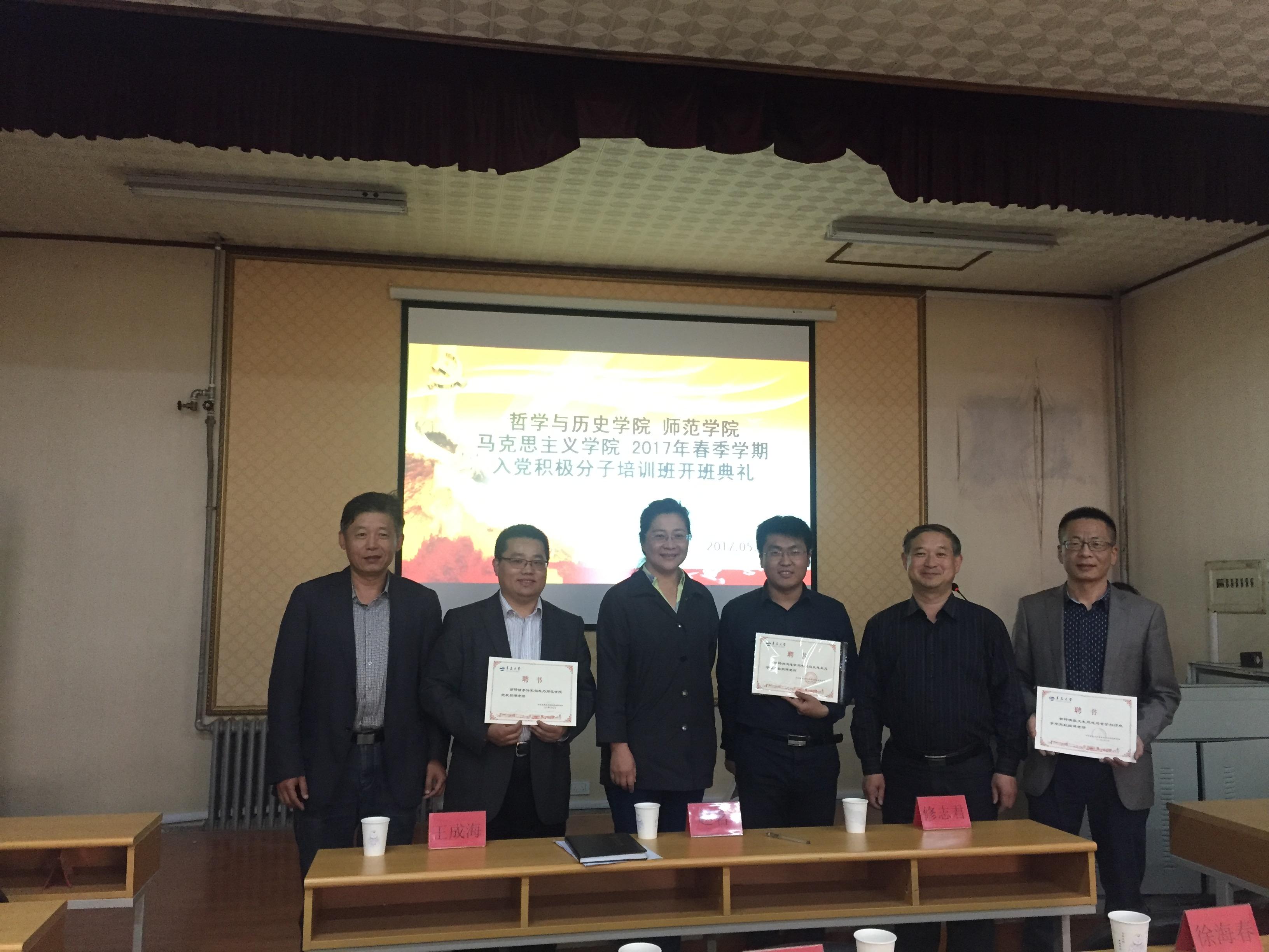5月10日下午,哲学与历史学院、师范学院、必赢242net官网2017年春季学期入党积极分子培训班开班典礼在笃行楼205隆重举行。必赢242net官网党委书记赵茗,哲学与历史学院党委书记修志君,以及各学院党委副书记、授课老师、辅导员和全体入党积极分子参加典礼。