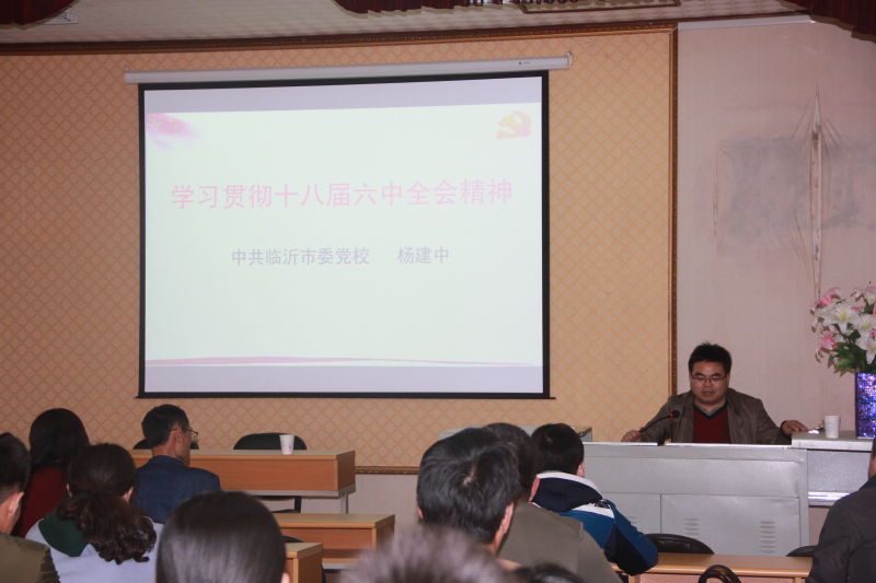 2017年4月7日下午,“山东省高校思想政治理论课特聘教授”、临沂市委党校副校长、杨建中教授在必赢242net官网第一会议室,为学院教师、全体研究生和2016级本科生做了题为“学习贯彻十八届六中全会精神”的报告。报告深入浅出、引经据典、联系实际,收到师生的热烈欢迎。