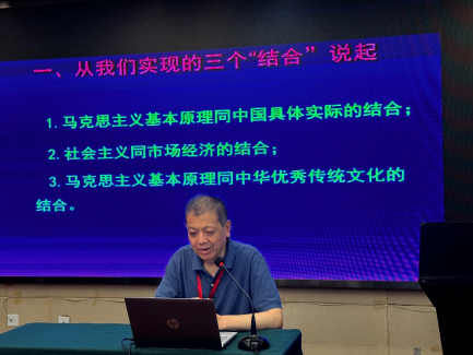 武汉大学哲学学院汪信砚教授作《马克思主义哲学中国化的几个基本理论问题》。他指出,中国化的马克思主义是马克思主义的理论成果,是将马克思主义与中国现实实际和历史实际的结合。汪信砚分析了“马克思主义在中国”与“马克思主义中国化”的区别、大众化与通俗化的区别,围绕马克思主义与传统文化的相互作用和关系,从马克思主义促进了中国先进文化的形成和发展与中国优秀传统文化丰富了马克思主义的内涵两个方面进行了论述。最后,汪信砚强调,马克思主义的发展是世界化和民族化统一的进程,要在这一进程中不断实现人的自由与全面发展。