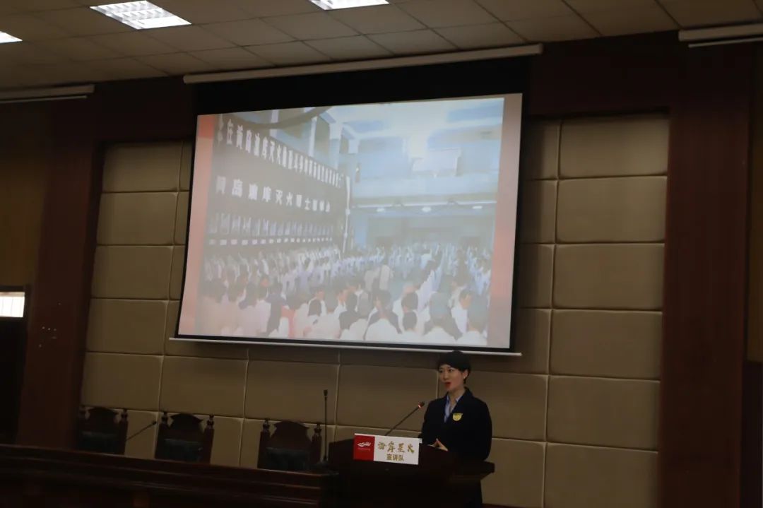 随后,青岛市党史纪念馆“海岸星火”宣讲队开展了“清明节铭记”巡回宣讲活动。宣讲队围绕青岛党史人物、抗美援朝历史、黄岛油库灭火英雄及道德模范李涌等主题展开深情宣讲,其动人的讲述令在场的师生们深受触动。同学们全神贯注地倾听,会场不时响起热烈的掌声!