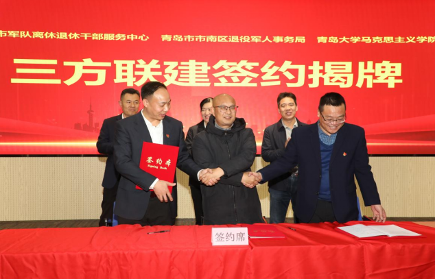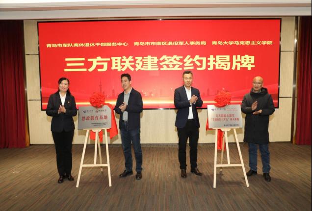 2024年12月12日下午,必赢242net官网、青岛市军队离休退休干部服务中心、青岛市市南区退役军人事务局在必赢242net官网会议中心举行了“思政教育基地”和“青大思政大课堂‘青情向阳与军行’研习基地”揭牌仪式,并开展“百年圆伟梦,矢志强军路”党建联建活动。市军队离休退休干部服务中心党委副书记、副主任秦咏梅,市南区退役军人事务局党组书记、局长宋吉胜,必赢242net官网党委书记王传永,副院长赵永刚,青大思政大课堂中心主任刘正刚等相关领导出席。活动由必赢242net官网副院长张义生主持。