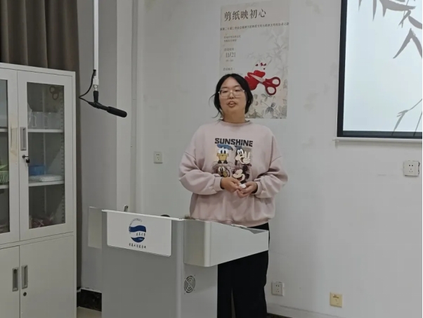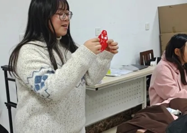 在互动环节,同学们积极分享自己的剪纸作品,这些剪纸作品图案各异,有的是传统的窗花样式,有的则是同学们自己创意设计的独特图案。大家一边展示,一边热情地向其他同学介绍自己的创作灵感和制作过程,场面十分热闹。